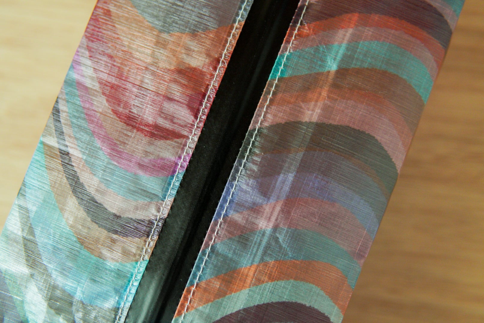DCFの半透明の生地にユラユラと流れる川のイラストをプリント